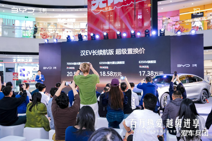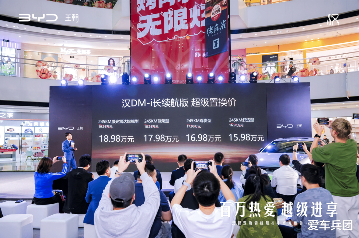比亚迪汉智驾版加推上市广州站在广州白云万达广场隆重举行。本次汉长续航版共推出7款车型,官方售价区间为16.98-21.58万元。但杀手锏在于其“超级置换价”——15.98万元至20.58万元。